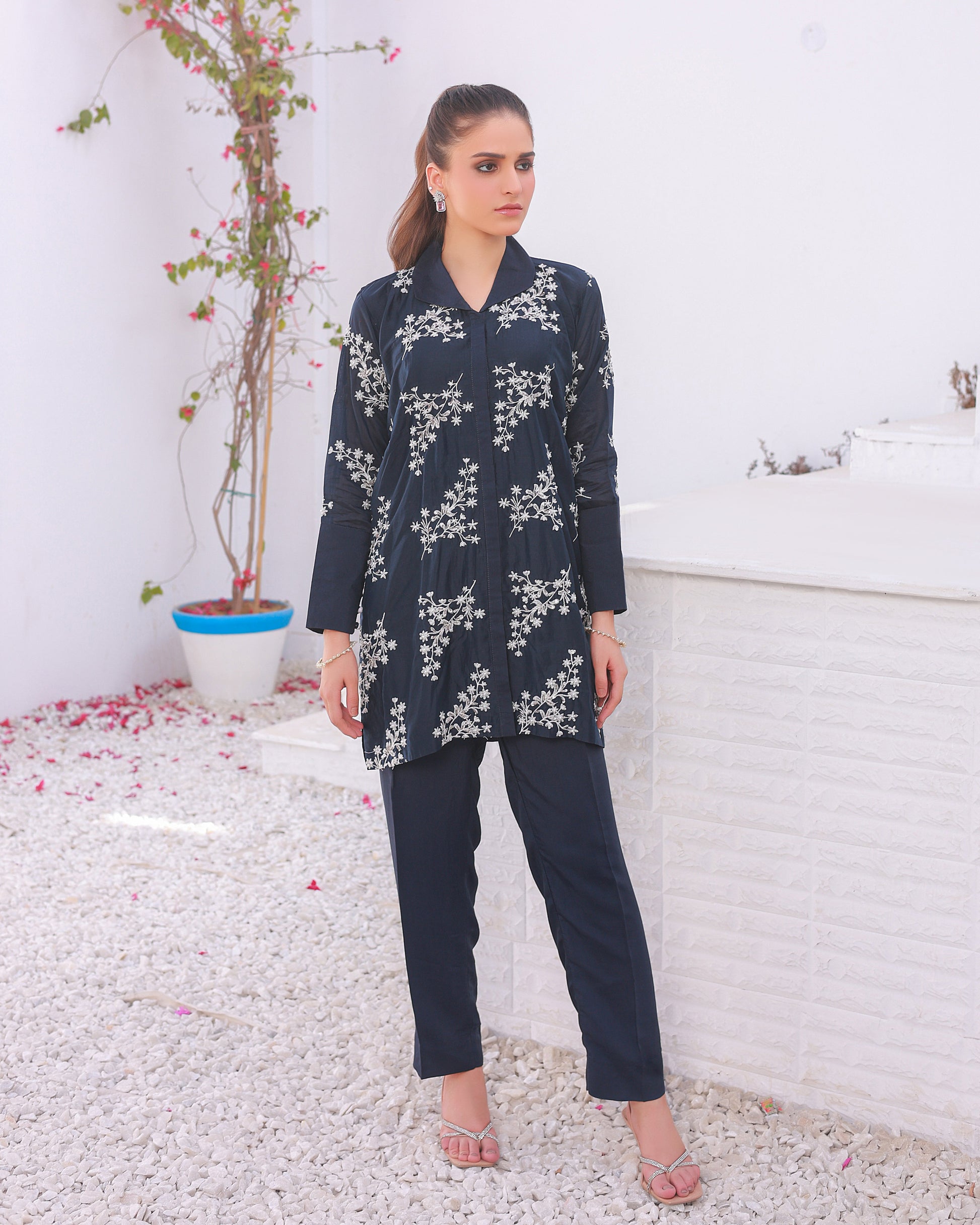 Our signature coord set, material lawn silk with hand embroidery and attatched lining. Trouser viscose fabric. Can be customized in various available colors.