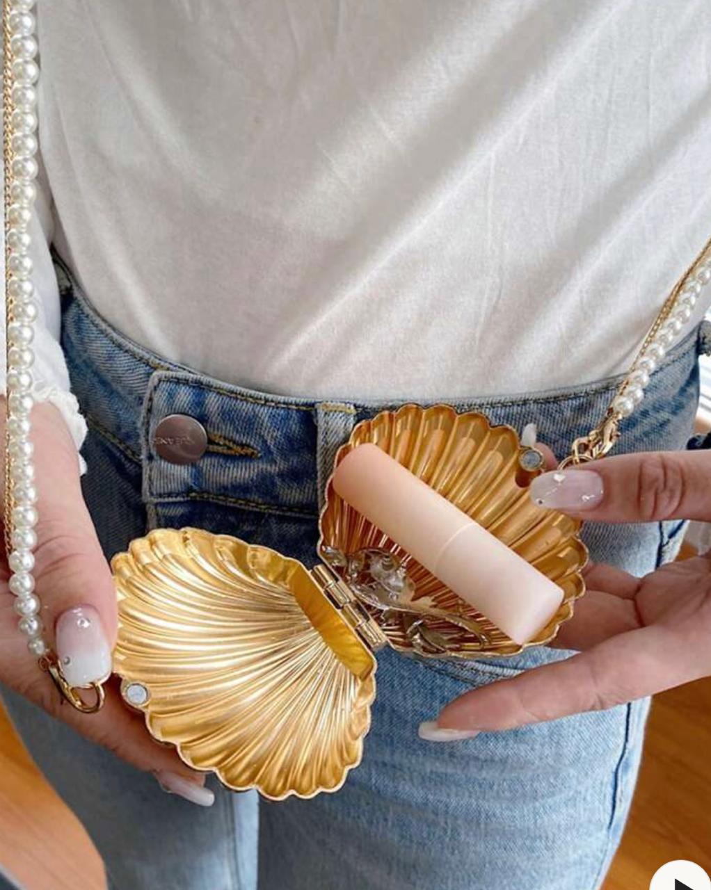 1pc New Mini Metal Shell Bag, Fashion Personalized Faux Pearl Strap Crossbody Bag, Electroplated Gold Cute Coin Purse, Earphone Bag, Cosmetic Lipstick Jewelry Bag With Metal Chain, Stylish Gift For Women, Futuristic Metallic Color Ladies Bag, Elegant Faux Pearl Bag, Elegant Shell Bag, Perfect For Parties, Weddings, Dinners & Banquets, Matches Wedding Dresses, Formal Wear, Prom Gowns, Birthday Outfits & Women's Party Attire